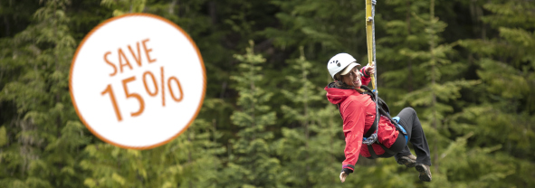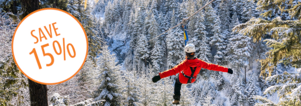 Book your winter ziplining adventure early and save 15%. Book by November 30th, for departures from November 1st to April 30th. Individual Tour products only, not valid on Combo or Package Offers (already discounted). Blackout periods: December 15th - January 4th, 2026, January 16th - 19th and February 13th - 16th, 2026.